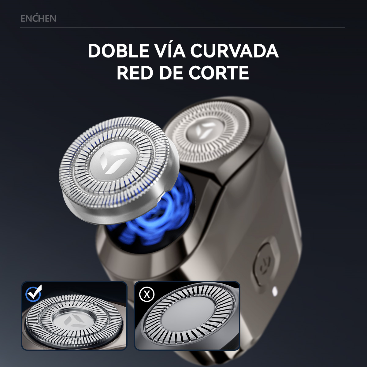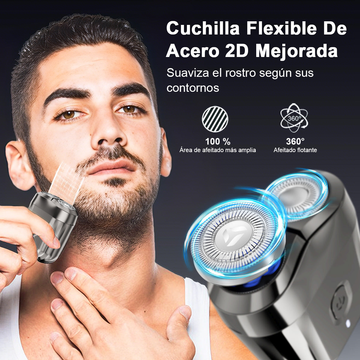 El diseño de doble hoja de la afeitadora ofrece una mayor superficie de contacto, lo que mejora la eficiencia, ayuda a afeitarse más rápido y ahorra tiempo.